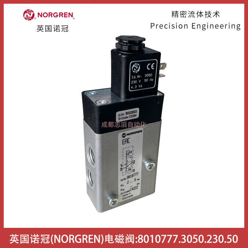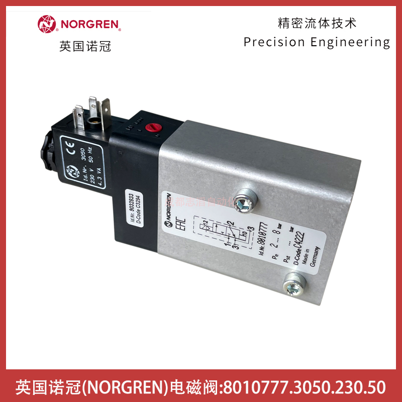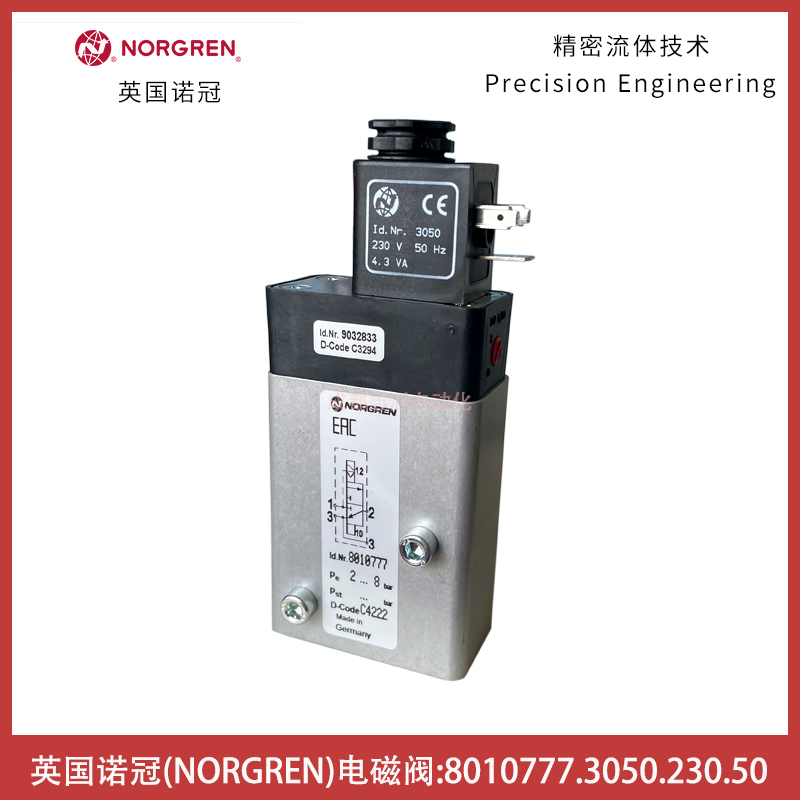 8010777.3050.230.50英國諾冠NORGREN電磁閥-埃邁海隆HERION技術(shù)參數(shù)簡介:接口尺寸1、3、5為G1/4、2和4位法蘭、工作壓力2-8bar、CV值為1.2閥體重量0.4kg、配諾冠NORGREN普通線圈3050-防護(hù)等級IP65(帶電氣接頭)、環(huán)境/流通溫度范圍-40到+50攝氏度、電氣接口DIN EN175301-803 B型、線圈重量0.054kg
