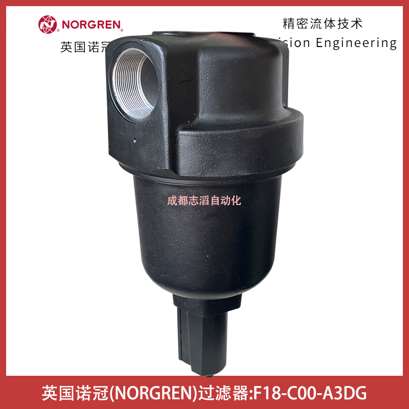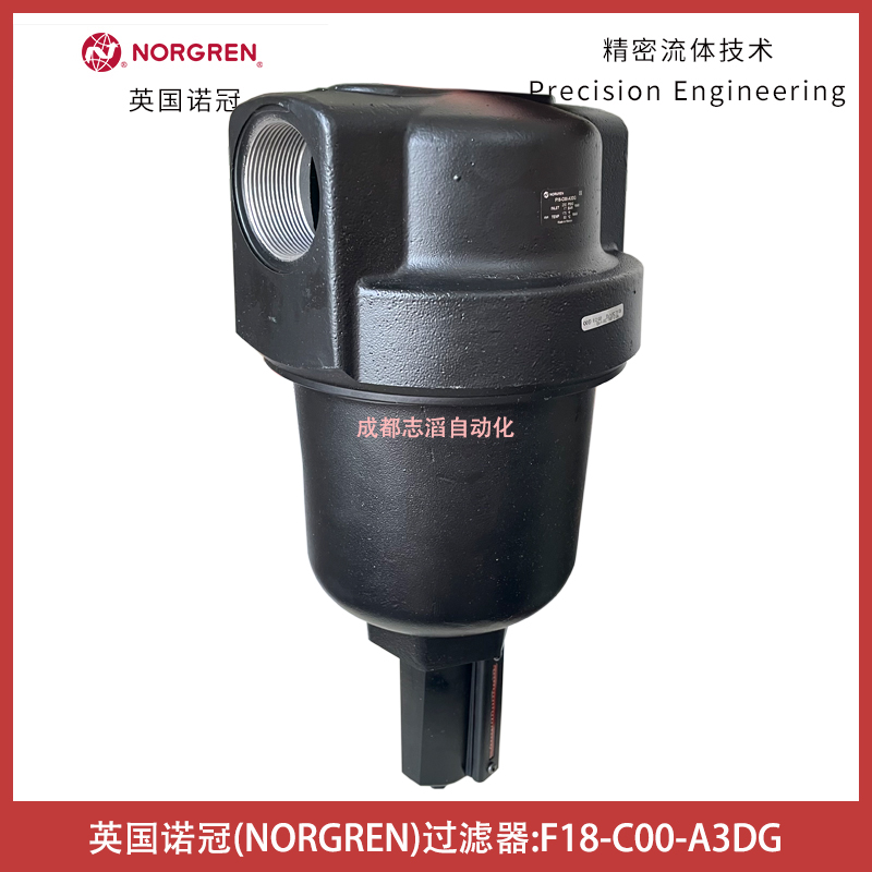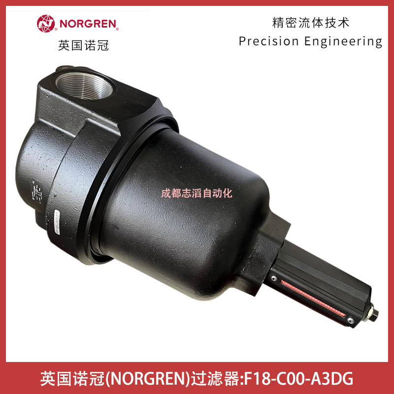 F18-C00-A3DG英國諾冠過濾器NORGREN氣源處理-埃邁海隆HERION技術簡介:接管口徑G2、過濾精度40um、流量765l/s、重量6.6kg、產地為墨西哥、應用行業軌道交通(盾構機)和汽車制造(輪胎生產線)、和諾冠大口徑大流量先導調壓閥R18-C00-RNXG配合使用!
