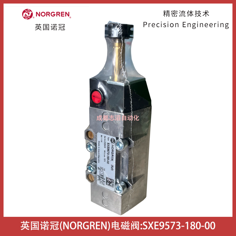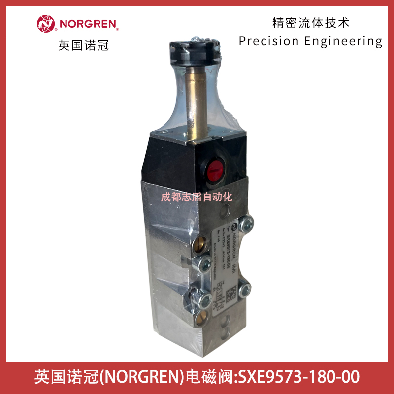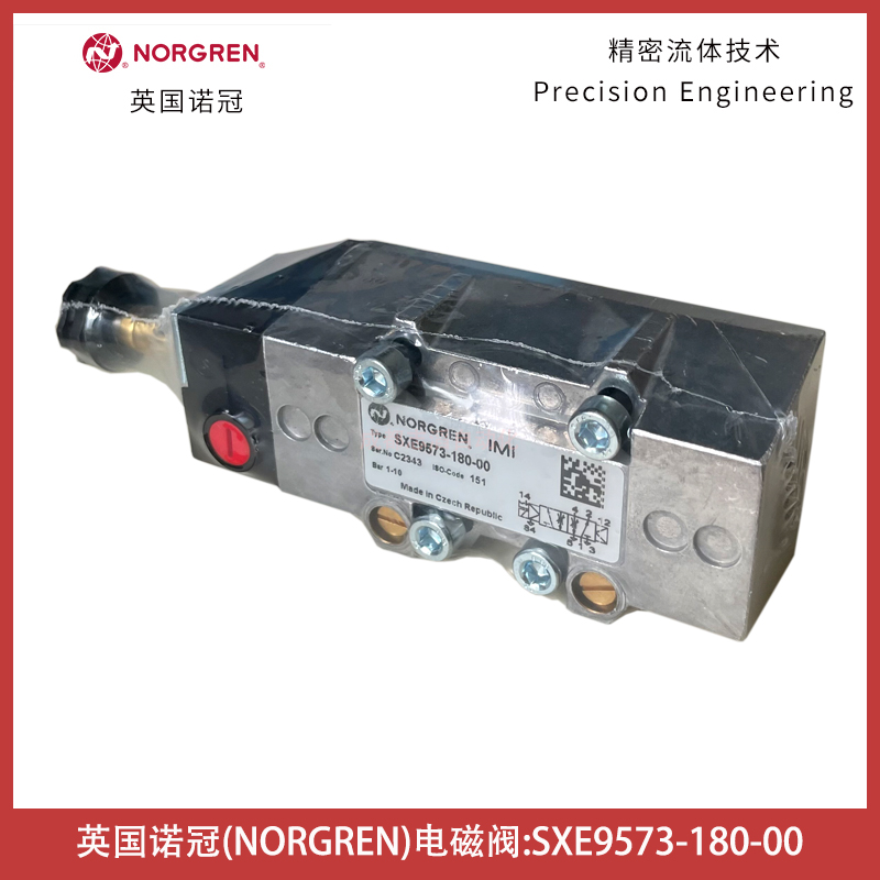 SXE9573-180-00英國諾冠NORGREN電磁閥技術參數:屬于ISO#1、流量1230l/min、工作壓力1-10bar、閥體重量0.33kg、閥芯為金屬、瑞士生產、德國組裝、應用行業:水泥生產線!