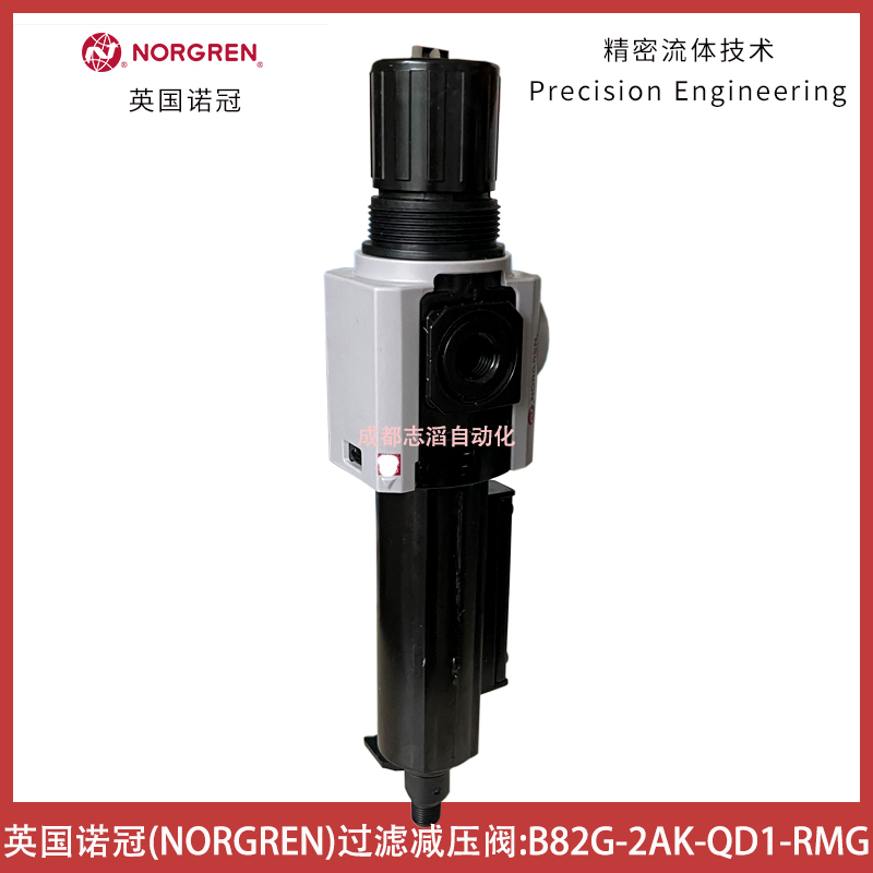 B82G-2AK-QD1-RMG英國諾冠過濾減壓閥NORGREN氣源處理器-埃邁海隆技術參數簡介:訂貨號33WC1047、介質壓縮空氣、口徑1/2、螺紋NPT、壓力范圍0,3 … 10 bar、濾芯5um、應用行業工業自動化行業、環境溫度-10到+60攝氏度、介質溫度范圍-25到+65攝氏度、產品重量0.5kg、排水方式手動、產地中國、貨期8-10周、