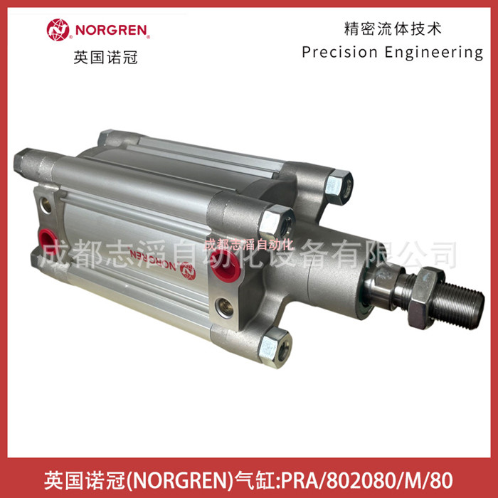 PRA/802080/M/80英國諾冠氣缸NORGREN氣動執行元件技術參數簡介:缸徑80mm、活塞缸徑25mm、氣口G3/8、行程80mm、工作壓力范圍1-16bar、環境溫度可達80攝氏度、氣缸維修包為QA/8080/00!產地英國諾冠中國工廠、貨期8-10周、