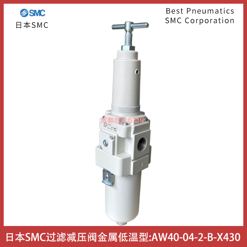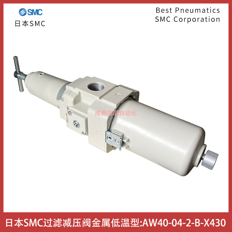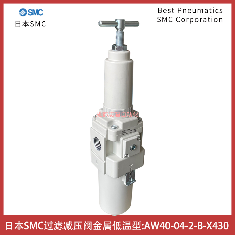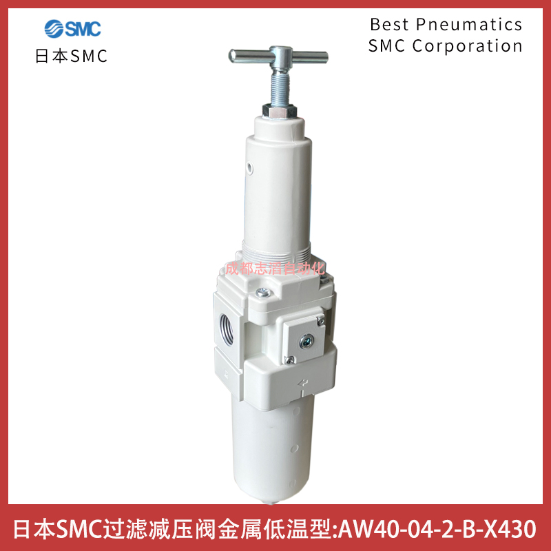 AW40-04-2-B-X430日本SMC過濾減壓閥低溫型金屬杯-埃邁諾冠海隆技術參數簡介:低溫環境使用(溫度范圍-30到+60攝氏度)、材料為鋁、密封件NBR、主體大小1/2、螺紋種類NPT、連接口徑為1/2、使用流體為空氣、使用壓力范圍1mpa、設備壓力為0.05-0.8mpa、可以壓力表接口為1/8配壓力表型號為G36-10-01、可以帶安裝托架型號為AW40P-270AS、可以安裝螺母AR40P-260S、溢流壓力為設定壓力為+0.05mpa時溢流為0.1、環境及流體溫度范圍-5到60攝氏度、過濾精度5um、過濾器和減壓閥一體化,省空間,省配管、冷凝水駐留量45立方厘米、杯材質為金屬杯、構造為溢流型、沒有保護罩、產地為中國!
